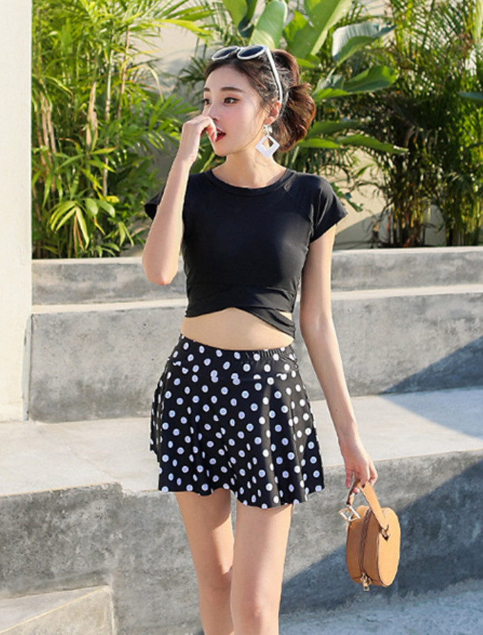 Bộ đồ bơi croptop tay dài phối váy ngắn, trẻ trung, nhẹ nhàng đi biển