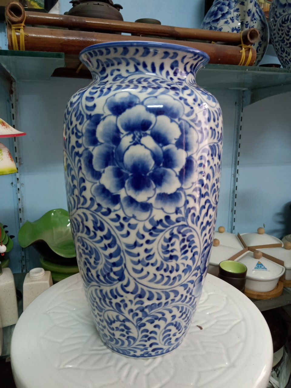 LỘC BÌNH SỨ MEN LAM CAO 80cm - GỐM SỨ BÁT TRÀNG . #gomsubattrang #binhphongthuy