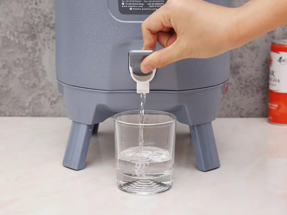 Bên cạnh đó, nắp vặn chắc chắn giúp kín hơi, có trang bị vòi gạt để tiện lợi lấy nước mà không cần phải mở nắp bình.