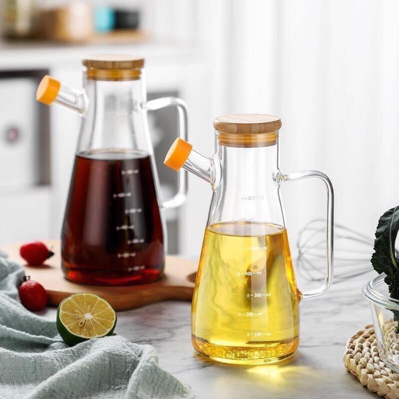 Bình Đựng Dầu Ăn, Nước Mắm Thuỷ Tinh Borosilicate Có Nắp Mở Tự Động Jianxia | Gia Dụng Plus