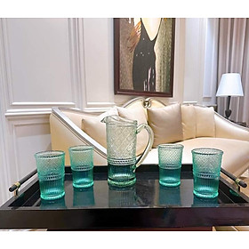 Bộ sane phầm bao gồm: - 1 bình thủy tinh - 6 ly uống nước khía sọc ( KHông bào gồm khay khách nhé ) Thiết kế đẹp mắt, phù hợp tiện dụng và tay