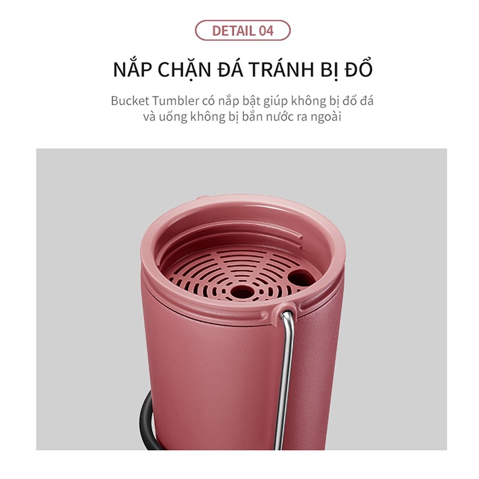 - Bucket Tumbler với nắp gắn ống hút giúp giữ đồ uống của bạn luôn lạnh và dễ nhâm nhi Lưu ý: