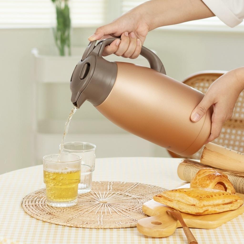 Rót nước tiện lợi – Nút bấm ngay tay cầm, hạn chế thất thoát nhiệt, an toàn cho trẻ nhỏ.