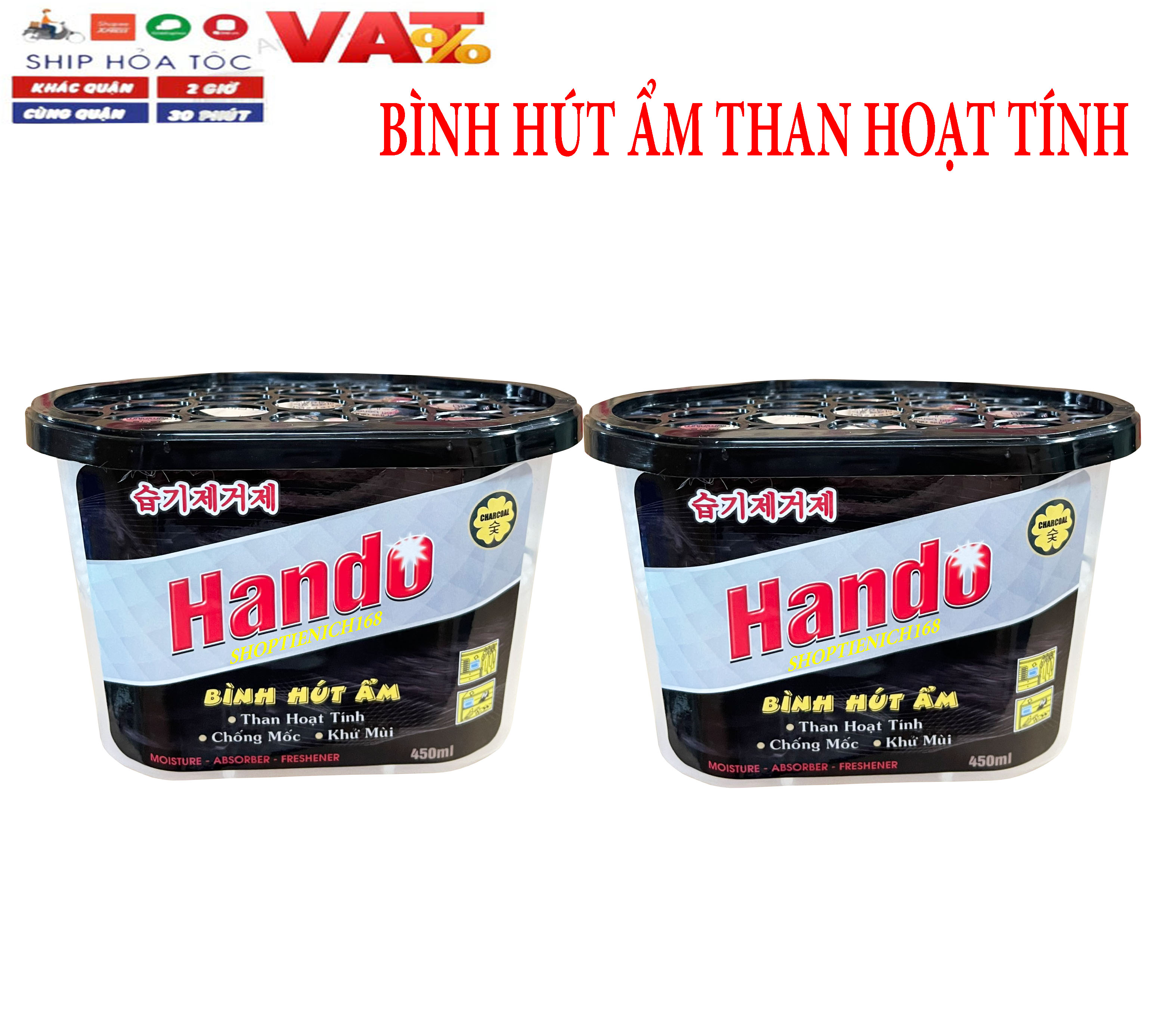 Tên sản phẩm : Bình hút ẩm chống ẩm mốc than hoạt tính Hando 450ml Công dụng : Sản phẩm có thể đặt trong tủ quần áo, tủ thuốc, tủ giày dép, tủ bếp và