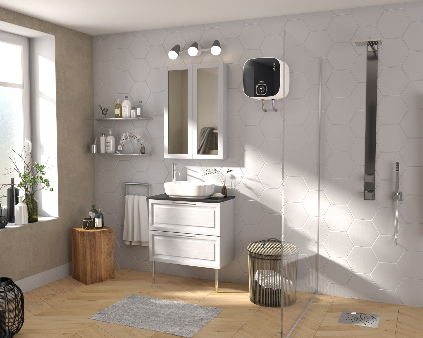 Máy Nước Nóng Gián Tiếp Với Thiết kế bình ngang, màu trắng giản đơn Bình nóng lạnh Ariston Vitaly 15l mang sắc trắng đơn giản, trung tính, dễ dàng kết hợp với mọi kiểu không gian phòng tắm.