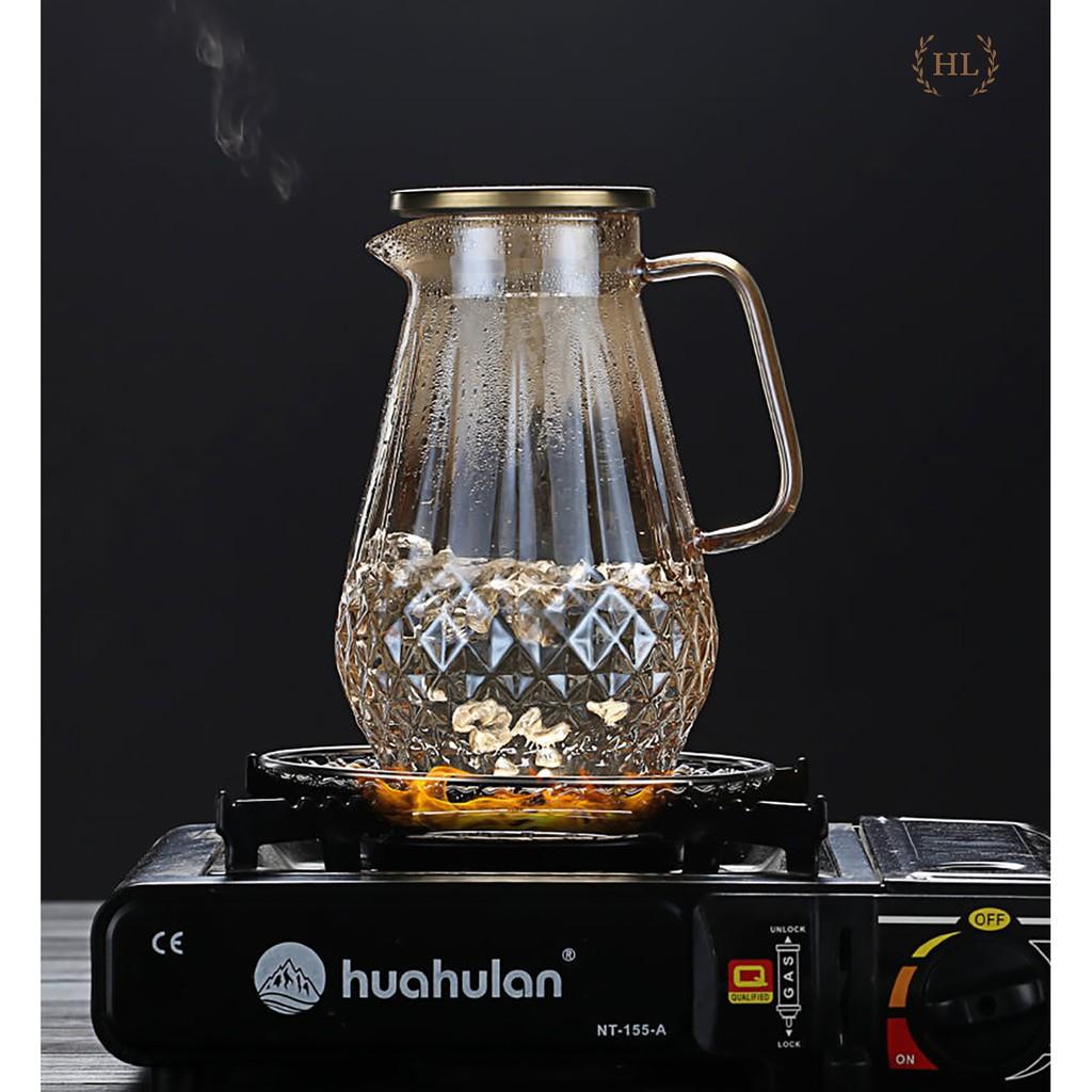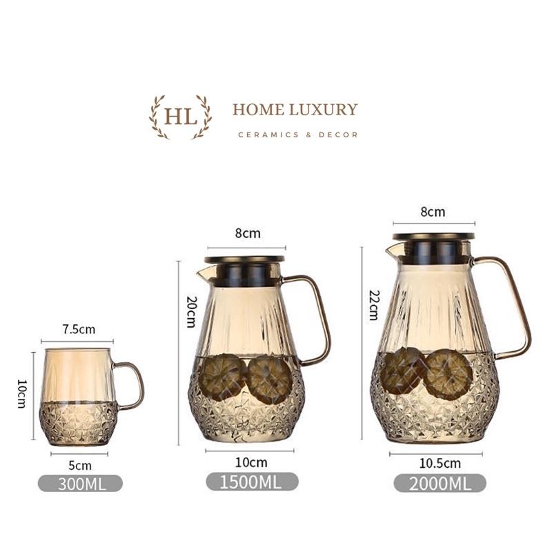 ✨Bình nước thủy tinh Borosilicate Vàng Hoàng Kim 2 Lít | Bình thủy tinh vàng cao cấp chống sock nhiệt dung tích 2000ml