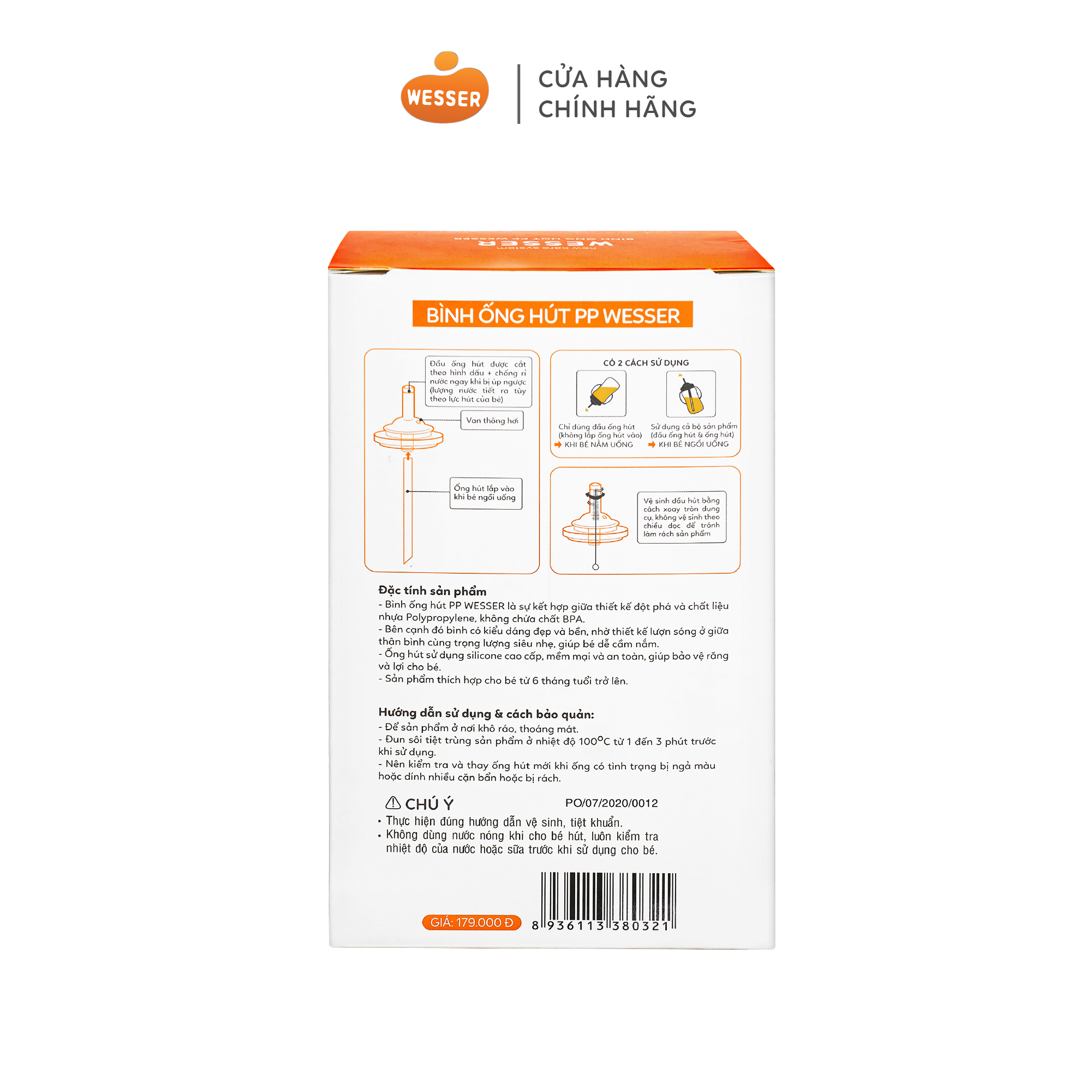 - Loại bình cổ rộng 260ml - Bình ống hút PP Wesser là sự kết hợp giữa thiết kế đột phá và chất liệu nhựa Polyproplene, không chứa chất BPA - Sử dụng ống hút silicone