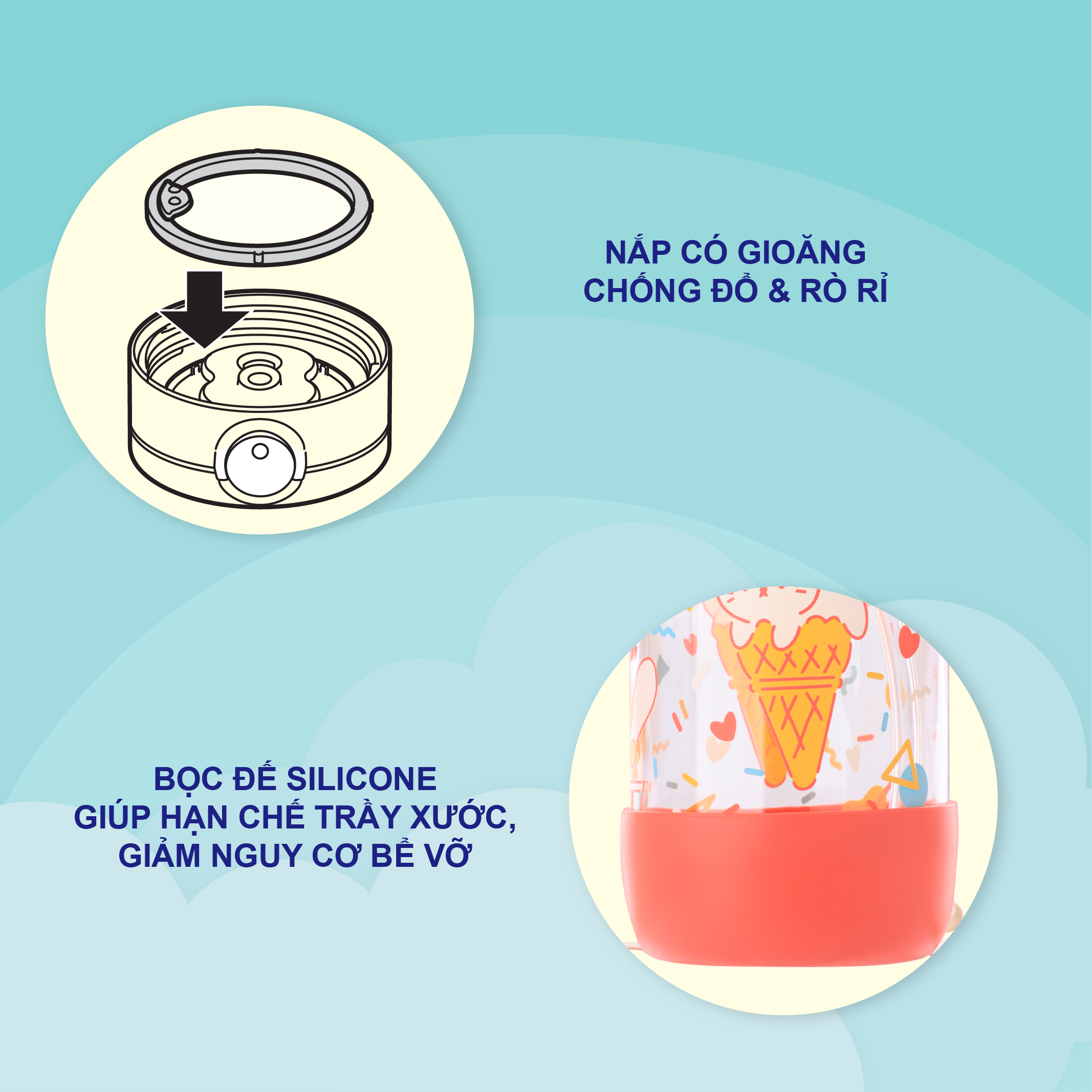 Đặc điểm sản phẩm - Nhựa PP an toàn, không chứa BPA, chịu nhiệt 120 độ C - Thiết kế phù hợp, vừa khuôn miệng - Tay cầm an toàn, chắc chắn - Quy cách:
