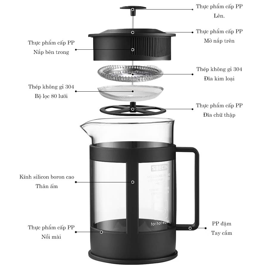 MÔ TẢ SẢN PHẨM : Bình pha cà phê kiểu pháp Bình pha cà phê kiểu Pháp cổ điển với thiết kế xoay độc đáo, giữ cho và phê của bạn luôn nóng - kết