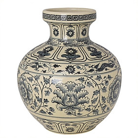 BÌNH HOA LAM GỐM CHU ĐẬU Ghi chú quan trọng:   - Sản phẩm có hai phiên bản: vẽ vàng kim và vẽ truyền thống, nhiều kích thước ( đường kính và chiều cao).  - Vì