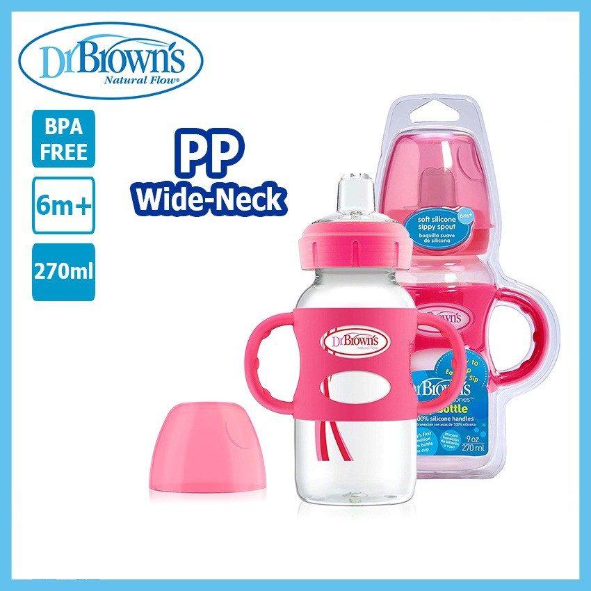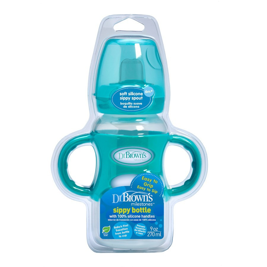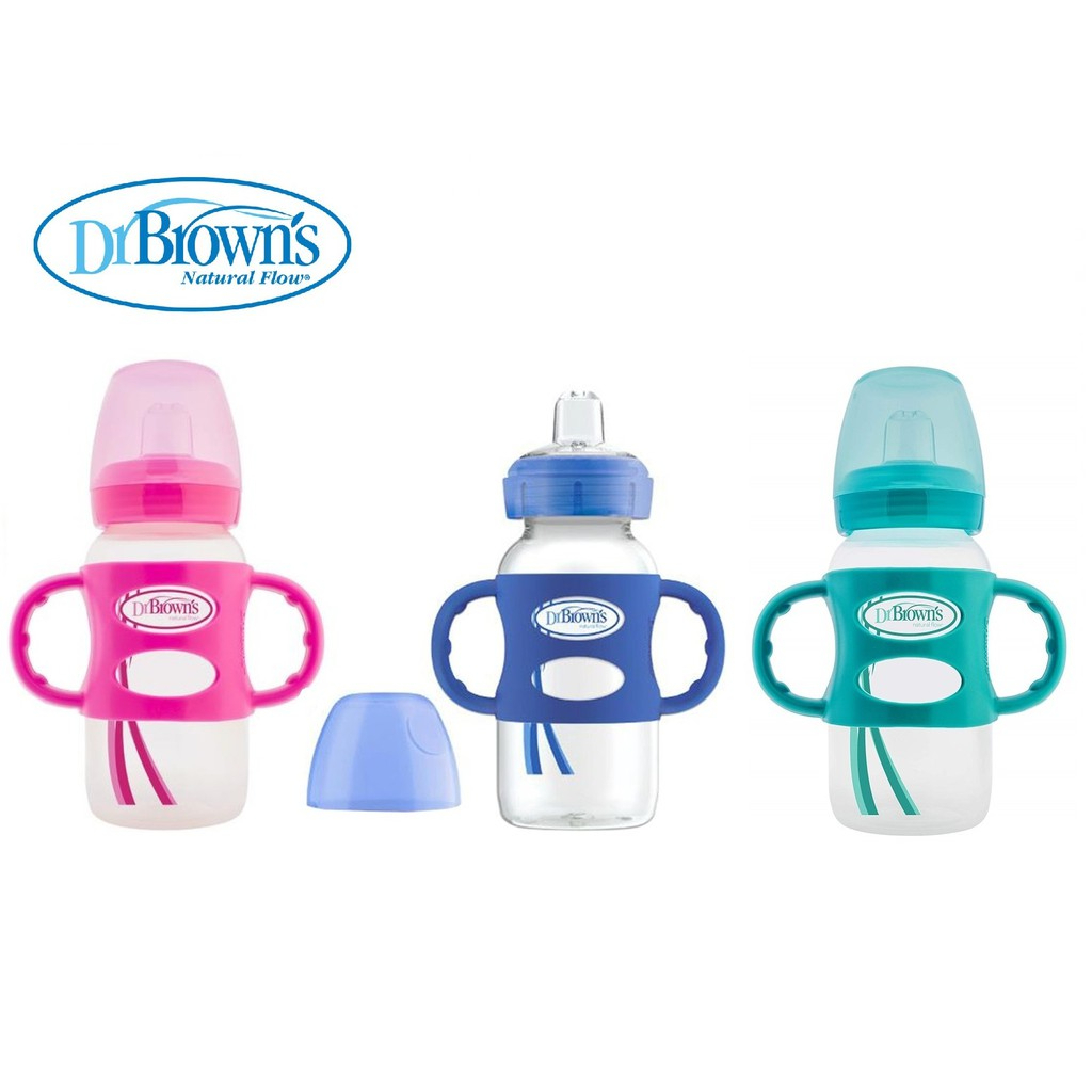 Bình sữa Dr. Brown 2 giai đoạn có tay cầm chia vạch là bước đầu tiên hoàn hảo chuyển từ bú sữa sang uống nước.