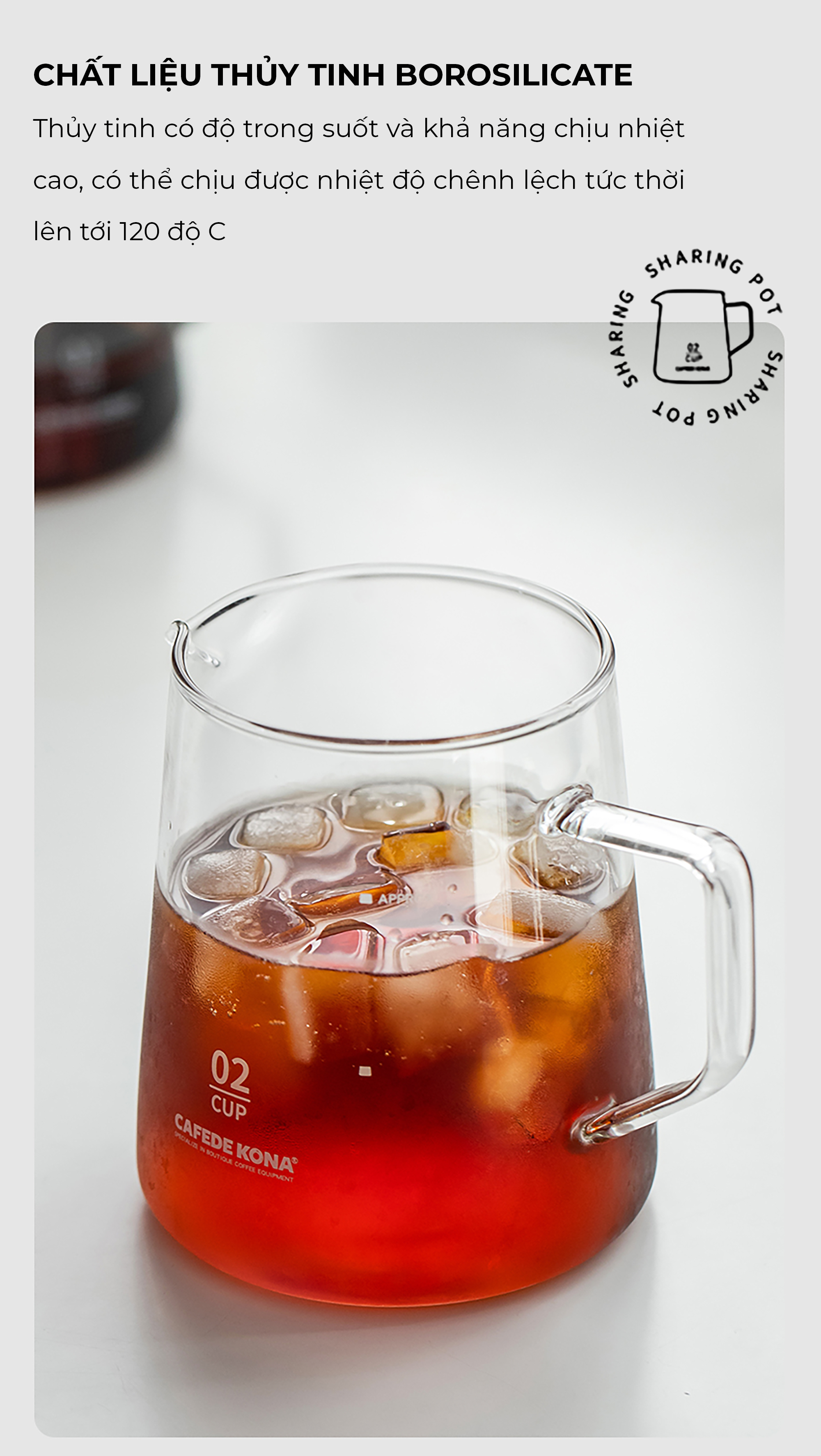 Bình làm từ thủy tinh cách nhiệt, giữ nhiệt ổn định trong quá trình pha chế mà không làm ảnh hưởng tới chất lượng của cà phê.