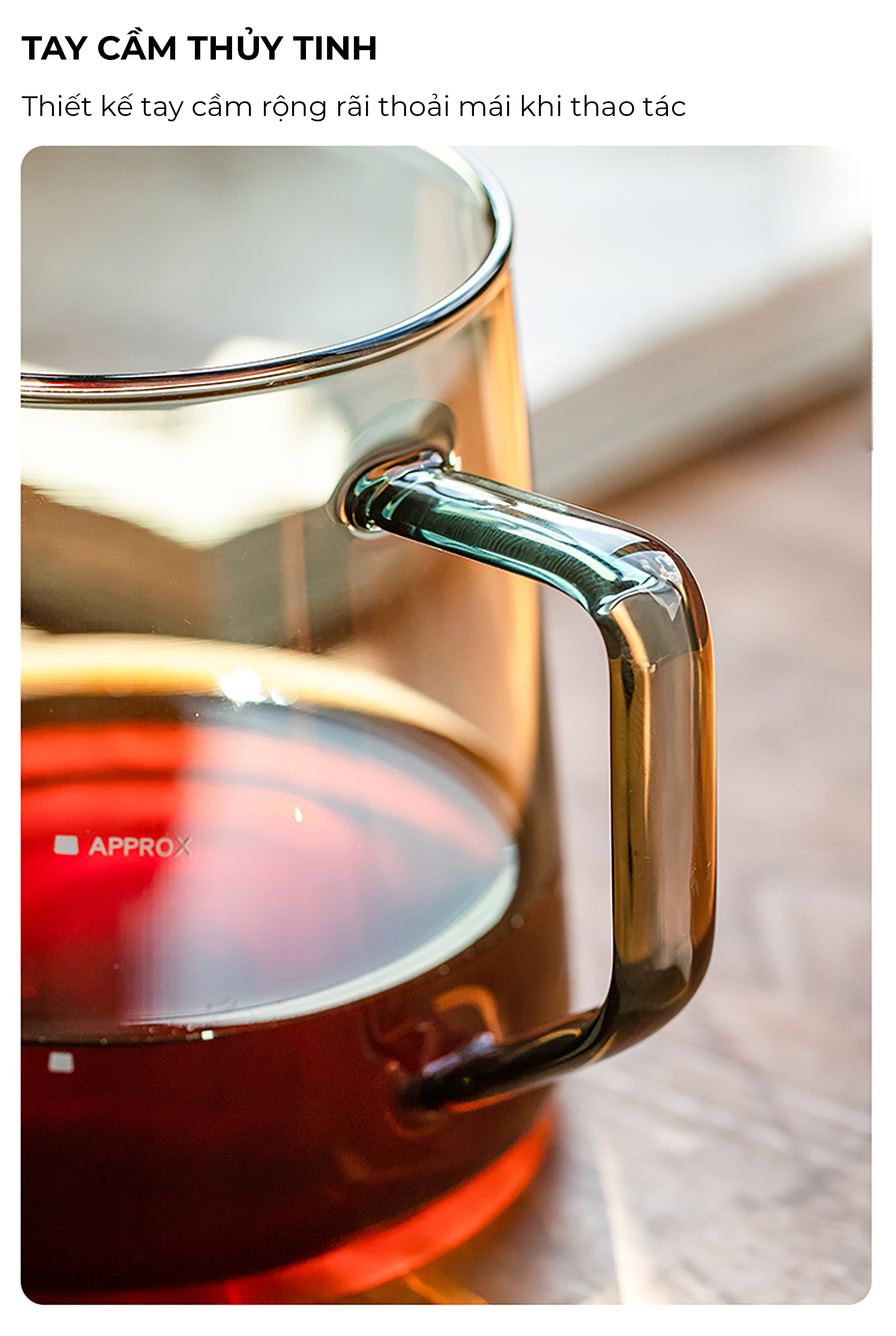 Bình làm từ thủy tinh trong suốt, quan sát được màu sắc chân thực của cà phê.