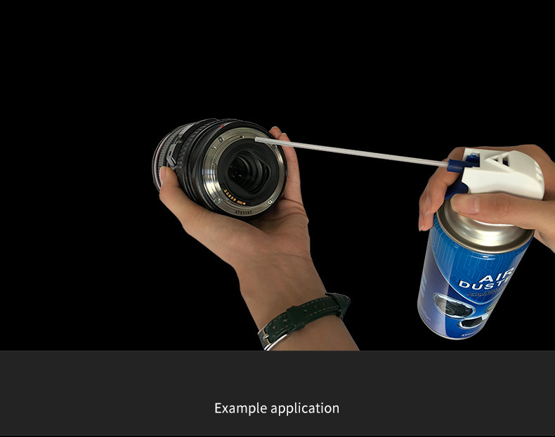 - Hướng dẫn sử dụng: Đầu tiên, lắc lên xuống nhiều lần toàn bộ chai khí khử bụi cực mạnh để ép hydro trong bình cùng với sản phẩm chất chống tĩnh điện/chất tăng trắng. Xịt trực tiếp lên màn hình hoặc thiết bị cần làm sạch khoảng cách từ 5-10CM.