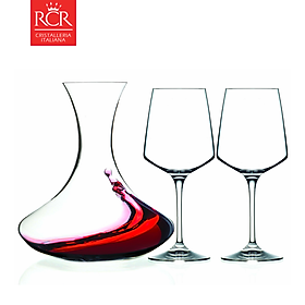 Bộ 1 Bình Thở Rượu Vang 2.0L và 2 Ly Rượu Vang 460ml Thuỷ Tinh Pha Lê Ý RCR - Aria Set 3pcs