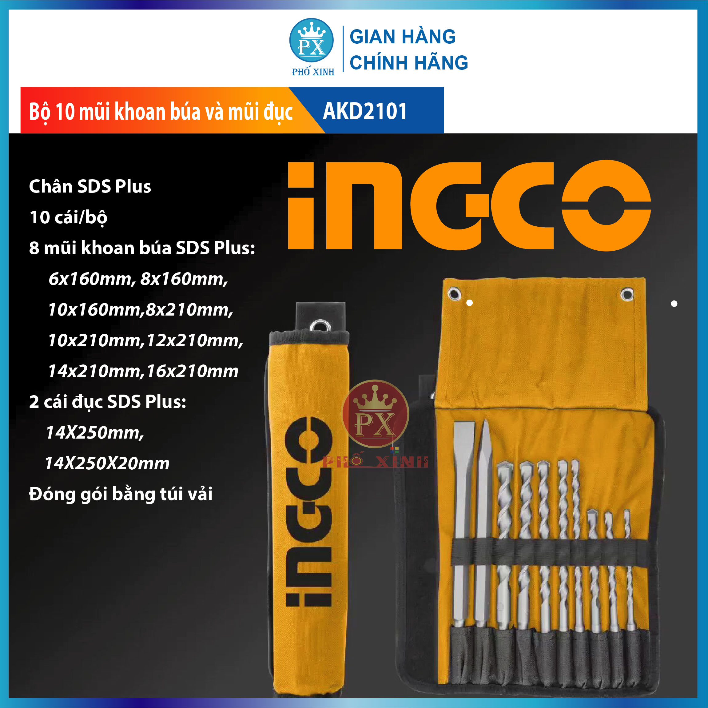 ✨Bộ 10 mũi khoan và mũi đục INGCO AKD2101