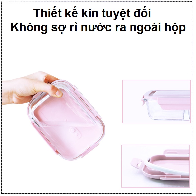 Hộp được trang bị nắp đậy bằng nhựa PP với các khớp khóa cùng gioăng silicone Hộp cơm chịu nhiệt thích hợp cho dân văn phòng, học sinh, sinh viên khi mà muốn tự chuẩn bị một bữa cơm đầy đủ chất dinh dưỡng.