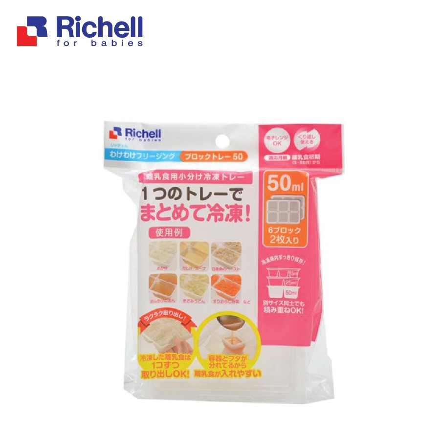 - Mỗi khay trữ đông Richell chia làm 6 ngăn nhỏ sâu lòng, đi kèm nắp đậy kín đảm bảo vệ sinh tối đa. Sản phẩm rất thích hợp để mẹ cất trữ khẩu phần riêng biệt cho con theo từng bữa (đặc biệt với các mẹ theo phương pháp ăn dặm kiểu Nhật).