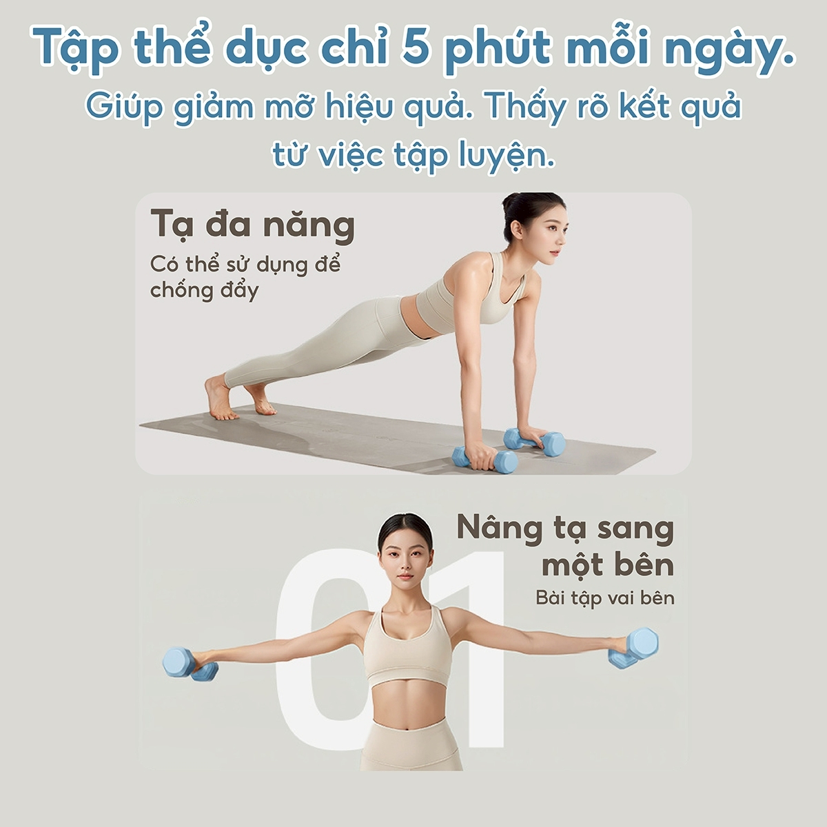 * Thông tin cơ bản : Tạ tay tháo lắp nữ cao cấp, dễ dàng điều chỉnh trọng lượng JD007 - Chất liệu: Sản phẩm được làm từ TPR độ cứng vừa phải tạo cảm giác