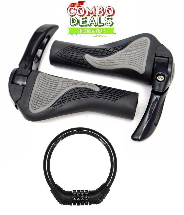 ✨Bộ 2 Tay Nắm Sừng Trâu Xe Đạp Thể Thao Cao Cấp tặng Khóa xe đạp chống trộm 4 số đổi mã