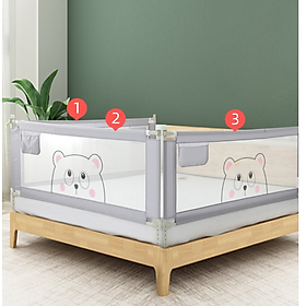 Thanh chắn giường mẫu gấu xám cực cute cho bé Dạng trượt lên xuống bằng thao tác bấm nút rất tiện sử dụng Nút bấm to bản, có khớp nối cố định giữa 2 thanh
