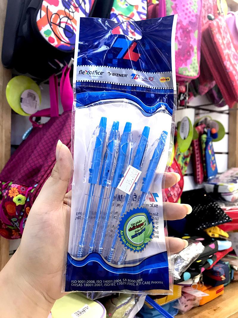 Vỉ 5 Bút Bi TL-097 - Màu Xanh Bút có thiết kế đơn giản, toàn bộ thân bút làm từ nhựa trong, nút bấm bằng nhựa cùng màu với ruột bút. Viết rất trơn, êm, mực ra đều, liên tục. Vỉ 5 Bút Bi Thiên Long TL 079 gồm 5 cây tiện lợi,tiết kiệm chi phí và thời gian mua sắm cho người dùng. Sản phẩm của Thiên Long được nghiên cứu kỹ lưỡng đáp ứng được các tiêu chuẩn của Việt Nam và quốc tế, dựa trên nhu cầu sử dụng và sức khỏe của người tiêu dùng, nên rất thân thiện, an toàn và không độc hại. Đặc tính sản phẩm: - Đầu bi cao cấp: 0.5mm, dạng needle sản xuất tại Thụy Sĩ - Độ dài viết được: 1.000-1.500m - Mực đạt chuẩn: ASTM D-4236, ASTM F 963-91, EN71/3, TSCA - Bút có đầu bấm và lo xo nhạy, bền, không bung, không kẹt, vướng. Lợi ích: - Đầu bi nhỏ tạo nét viết thanh mảnh - Sản phẩm được thiết kế trẻ trung năng động phù hợp cho học sinh, sinh viên Lưu ý : - Bấm lại sau khi sử dụng - Bảo quản nơi khô ráo, thoáng mát .