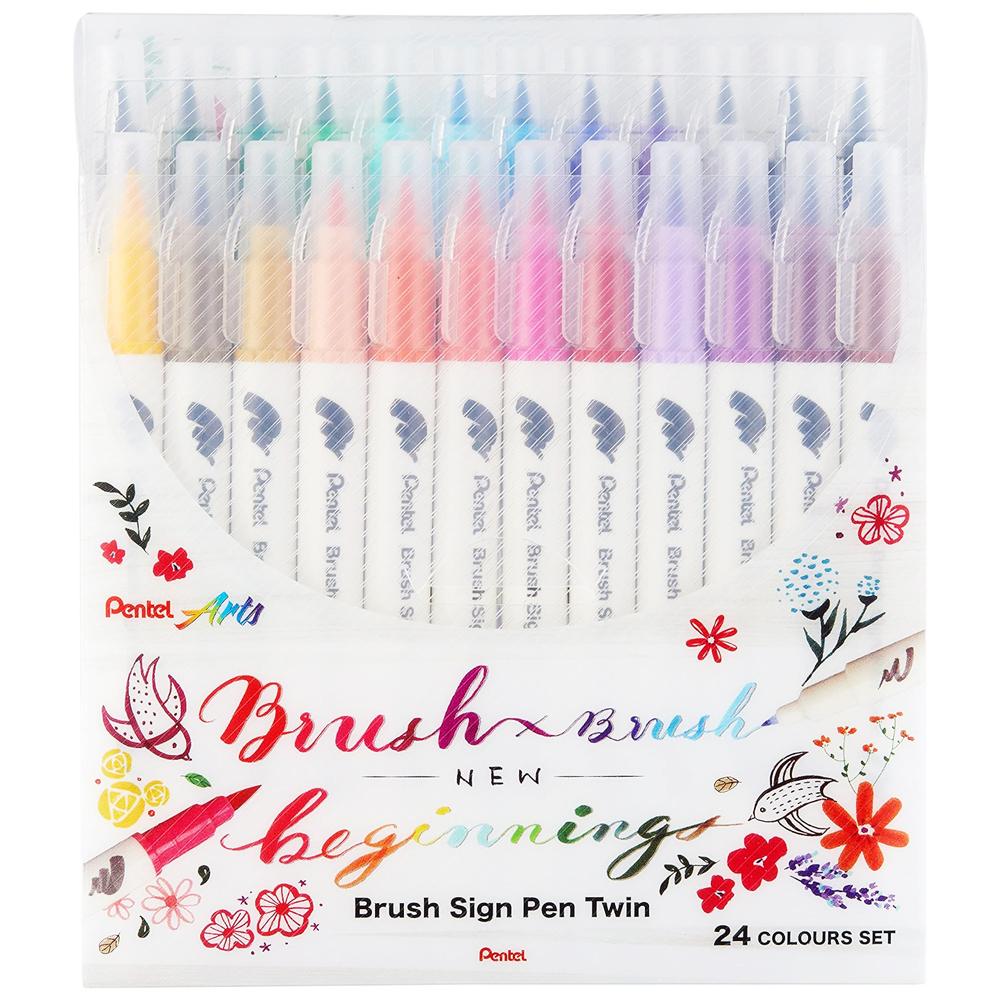 Bộ 24 Bút Lông Màu Nước 2 Đầu - Brush Sign Pen Twin - Pentel Art SESW30C-24E