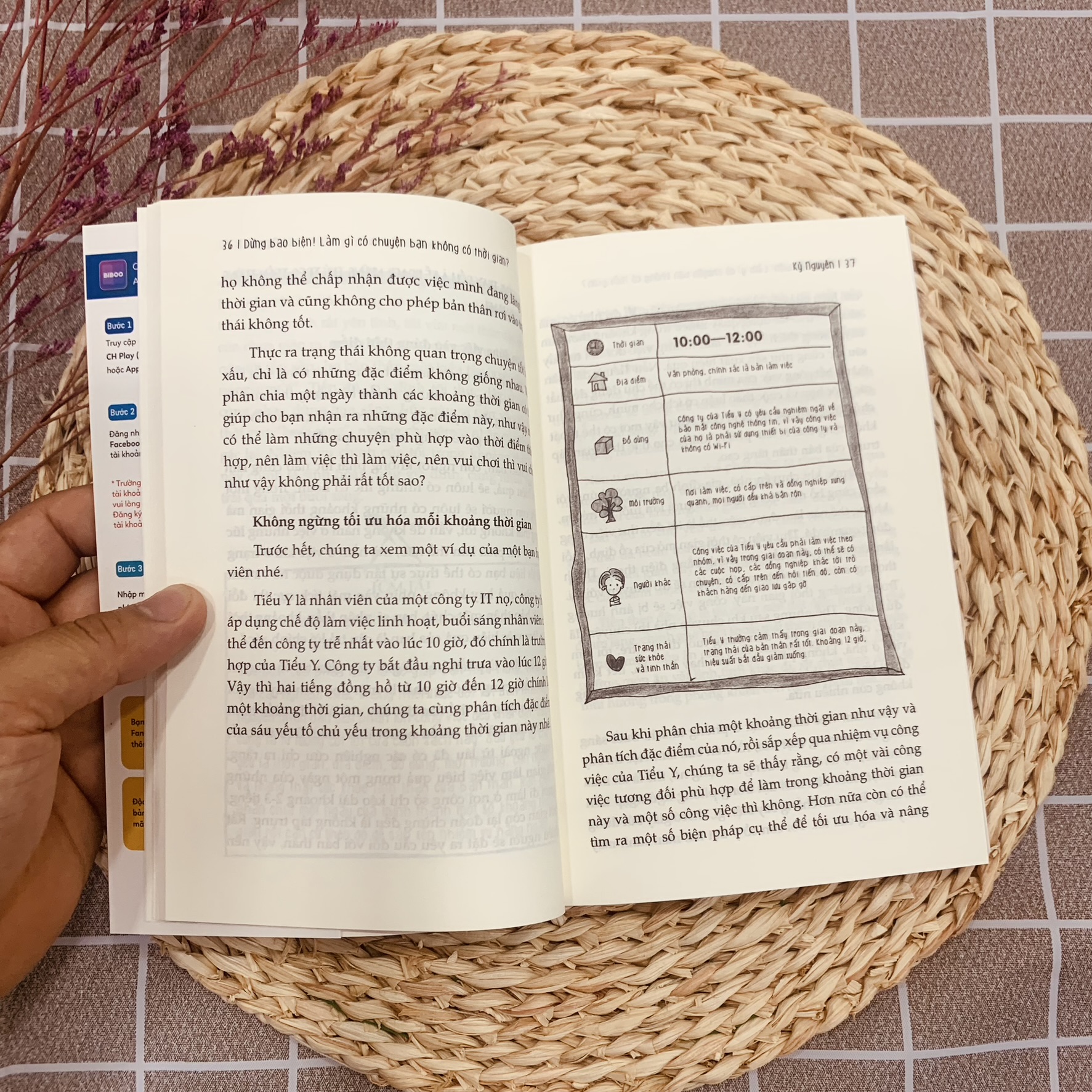 Cuốn sách này sẽ giúp bạn quản lý những khoảng thời gian nhỏ lẻ, sắp xếp thời gian thông minh, không gò bó theo nó, mà là lên kế hoạch cho khoảng thời gian phù hợp nhất với sự thoải mái về thể chất và tinh thần của bạn.