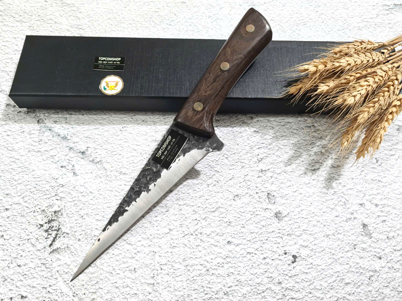 D SỐ 1 : TỔNG DÀI : 27cm, LƯỠI: 14cm,RỘNG : 2.3cm, dày: 2.5mm, CHẤT liệu lưỡi: 5Cr15MOV (thép 5 crom 15 molypden vanadi).Chất liệu CÁN: gỗ Cánh gà,.NẶNG : 1.5 lạng