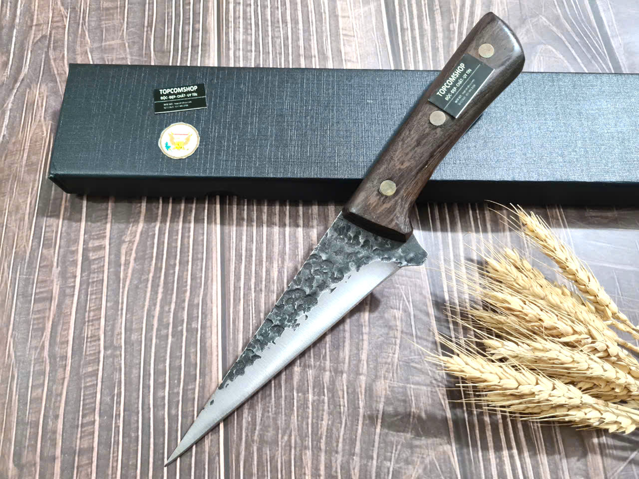 D SỐ 2 : TỔNG DÀI : 30cm, LƯỠI: 17.5cm,RỘNG : 2.9cm, dày: 2.5mm, CHẤT liệu lưỡi: 5Cr15MOV (thép 5 crom 15 molypden vanadi).Chất liệu CÁN: gỗ Cánh gà,.NẶNG : 2 lạng