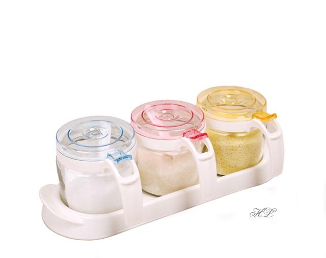 Bộ Hộp Hũ Đựng Gia Vị Thủy Tinh Nhà Bếp Thông Minh 3 Ngăn Cao Cấp Đạt Chất Lượng LFGB Đức SSGP