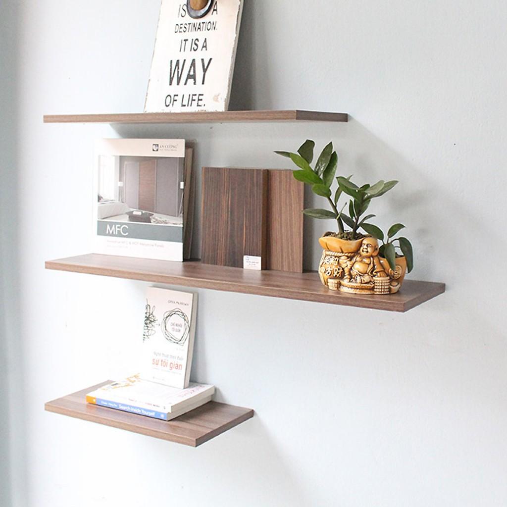 Bộ 3 kệ : 40,50,60cm x 15cm Kệ Treo Tường Thanh Ngang Gỗ MDF Lõi Xanh Chống Ẩm