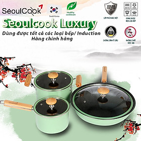 ✨Bộ 3 món nồi chảo đáy từ cao cấp Hàn Quốc Seoulcook Luxury chống dính vân đá an toàn cho sức khỏe, dùng được tất cả các loại bếp/ Induction – Hàng chính hãng