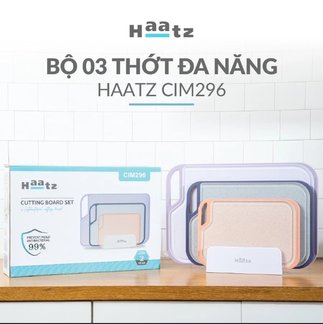 Bộ 3 thớt Haatz là bạn đồng hành lý tưởng cho mỗi gia đình, mang đến trải nghiệm sử dụng an toàn và hiện đại. Thiết kế tối giản đi kèm giá đặt giúp bạn bảo quản gọn gàng, tiết kiệm không gian trong căn bếp.