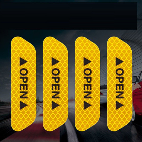 Bộ 4 Miếng Dán Phản Quang OPEN Cảnh Báo An Toàn Chống Trầy Cho Cửa Xe Hơi - Nhiều Màu Cho Bạn