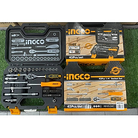 ✨BỘ 45 ĐẦU TUÝP 1/4INCH VÀ CẦN 2 CHIỀU INGCO HKTS14451 - HÀNG CHÍNH HÃNG