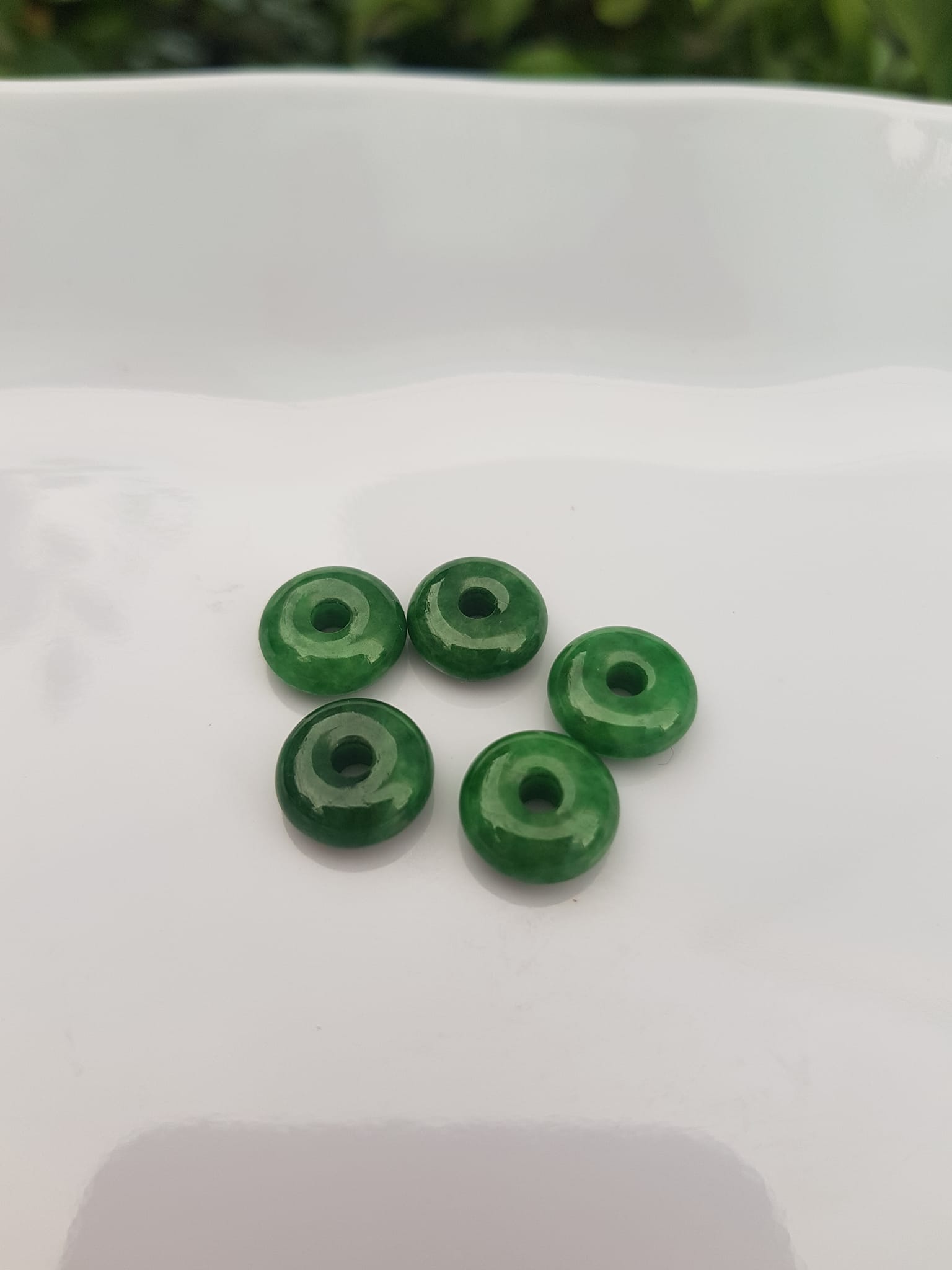 Bộ 5 đồng tiền đá cẩm thạch tự nhiên xanh ngọc đậm đều đẹp Nữ Phối vòng tay,mặt dây chuyền vàng đeo cực kỳ xinh xắn ạ Size hạt 9mm x dầy 3,8mm x lỗ