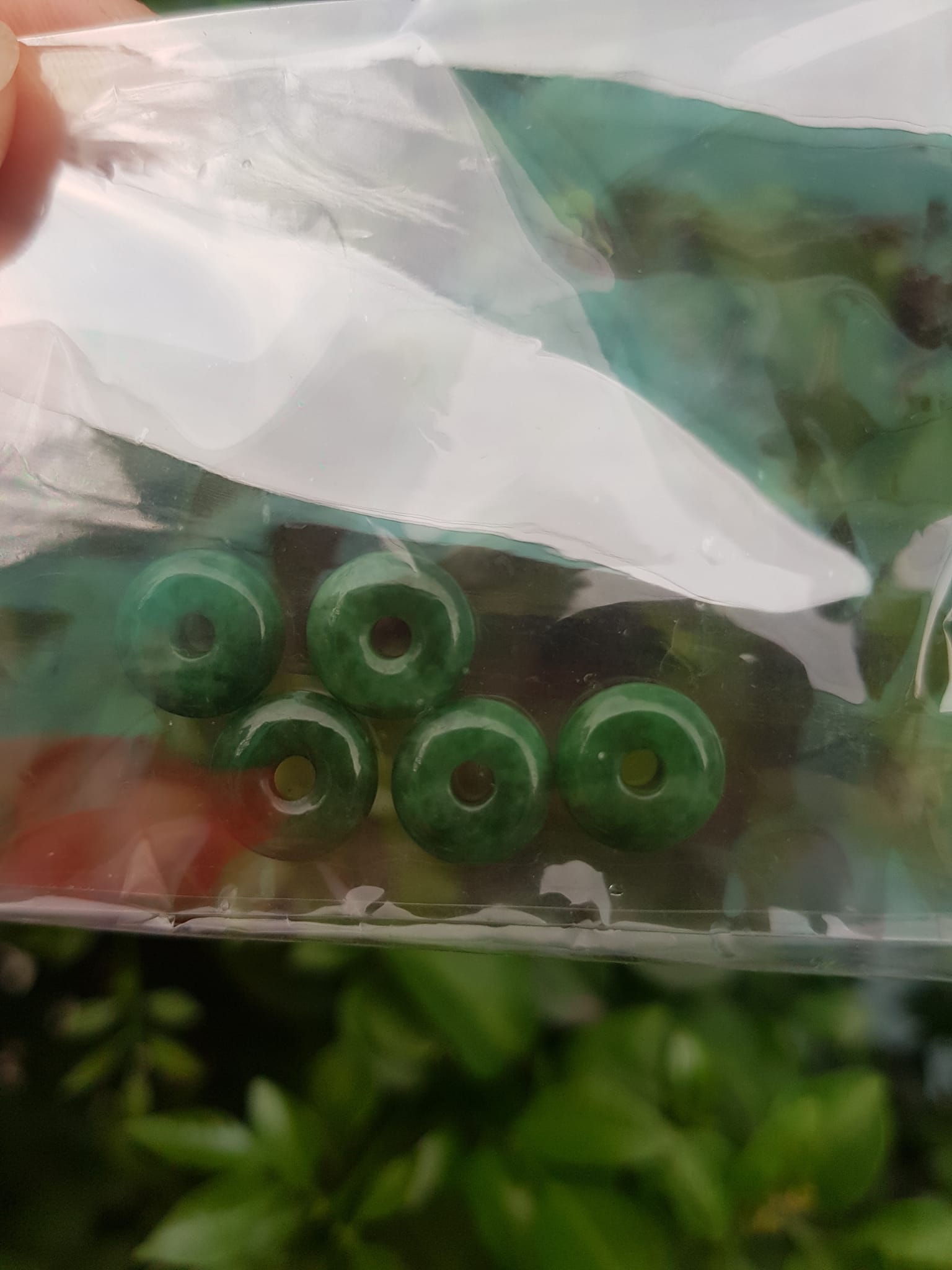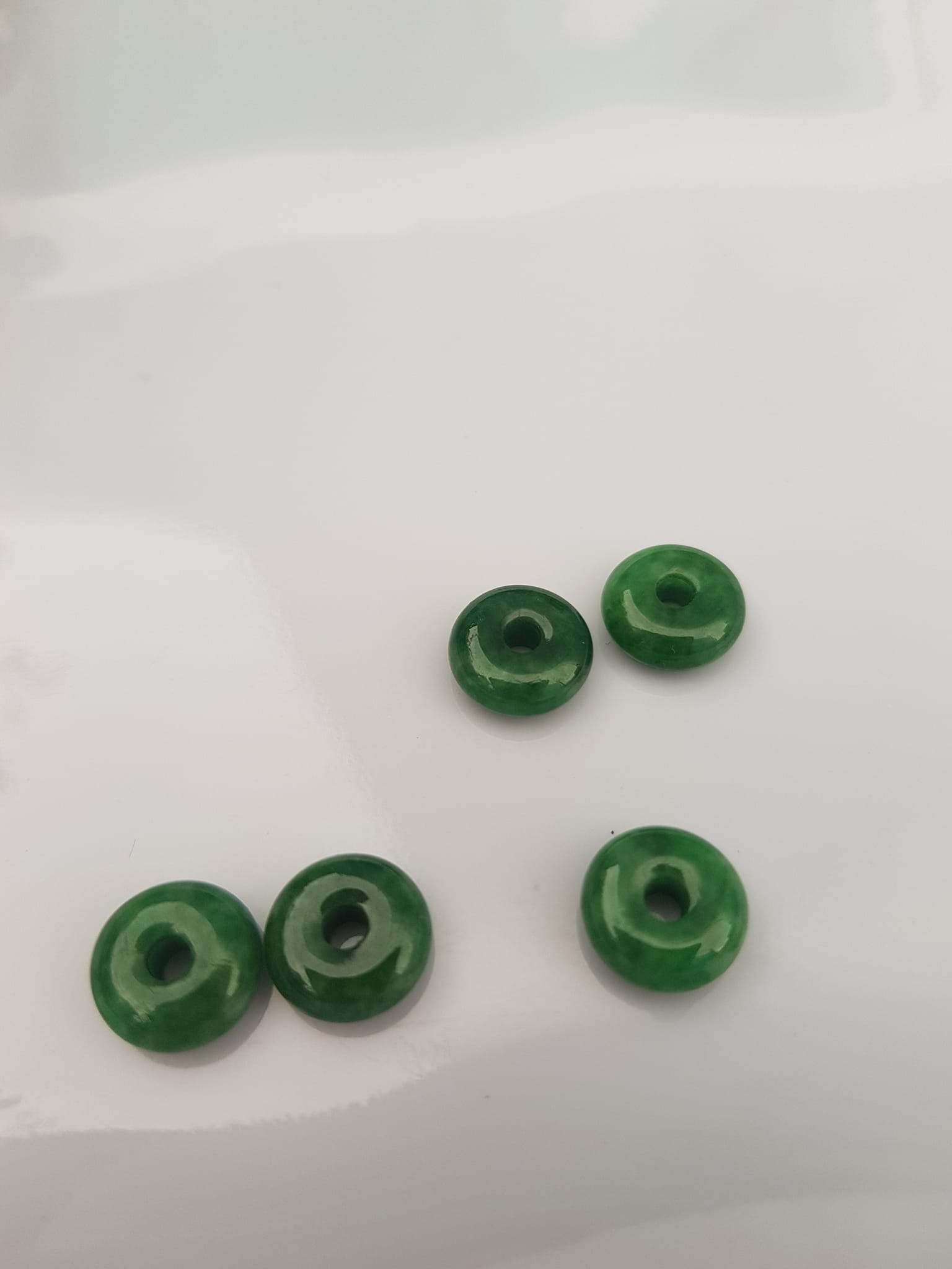 ✨Bộ 5 đồng tiền đá cẩm thạch tự nhiên xanh ngọc đậm đều đẹp Nữ Phối vòng tay,mặt dây chuyền vàng đeo cực kỳ xinh xắn ạ Size hạt 9mm x dầy 3,8mm x lỗ ở giữa đk 2mm mệnh Thủy Mộc Hỏa ạ