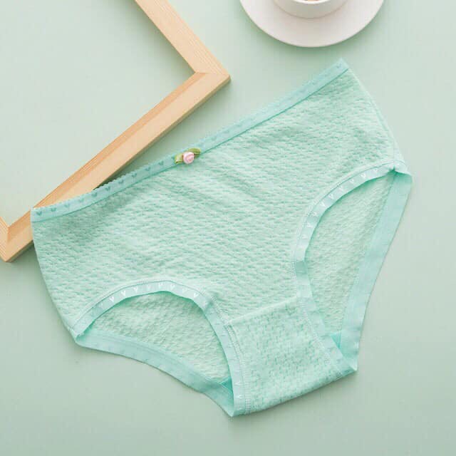 Quần Lót Nữ Cotton Kháng Khuẩn Kiểu Vải Nhăn Cạp Gắn Nơ, Quần Chip Thấm Hút Mồ Hôi