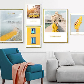 ✨ Bộ 5 Tranh treo tường phòng khách, phòng ăn - Bộ 05 tranh chủ đề DU LỊCH VÀNG tặng kèm khung và đinh treo tường PVP-DC502