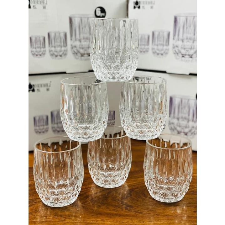 ✨Bộ 6 cốc thủy tinh uống nước hoặc rượu tây sang trạng vân bóng