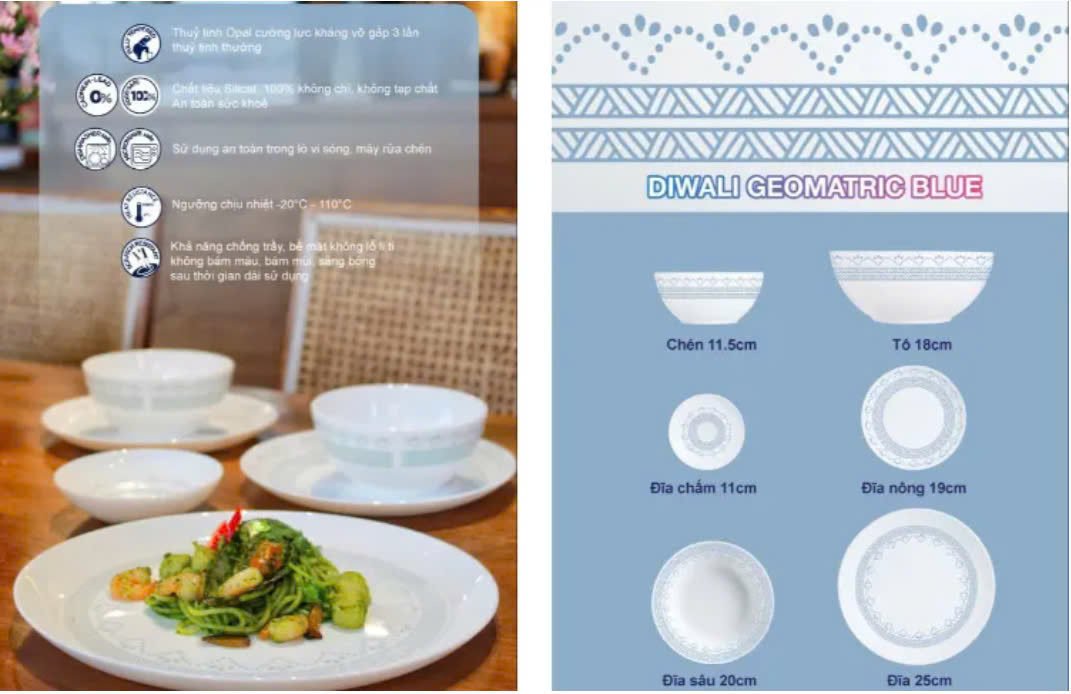 - Quy cách : 6 Cái/ bộ. - Kích thước: 20 cm. - Chất liệu: Thuỷ tinh opal, cường lực, kháng vỡ. - Có thể sử dụng trong lò vi sóng và máy rửa bát.