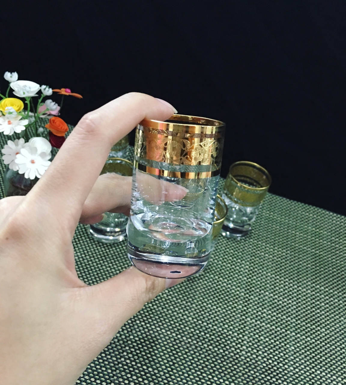 bộ 6 ly mắt trâu phối gold 24k chén nhỏ uống rượu mạnh sang trọng lịch lãm dung tích nhỏ 15ml