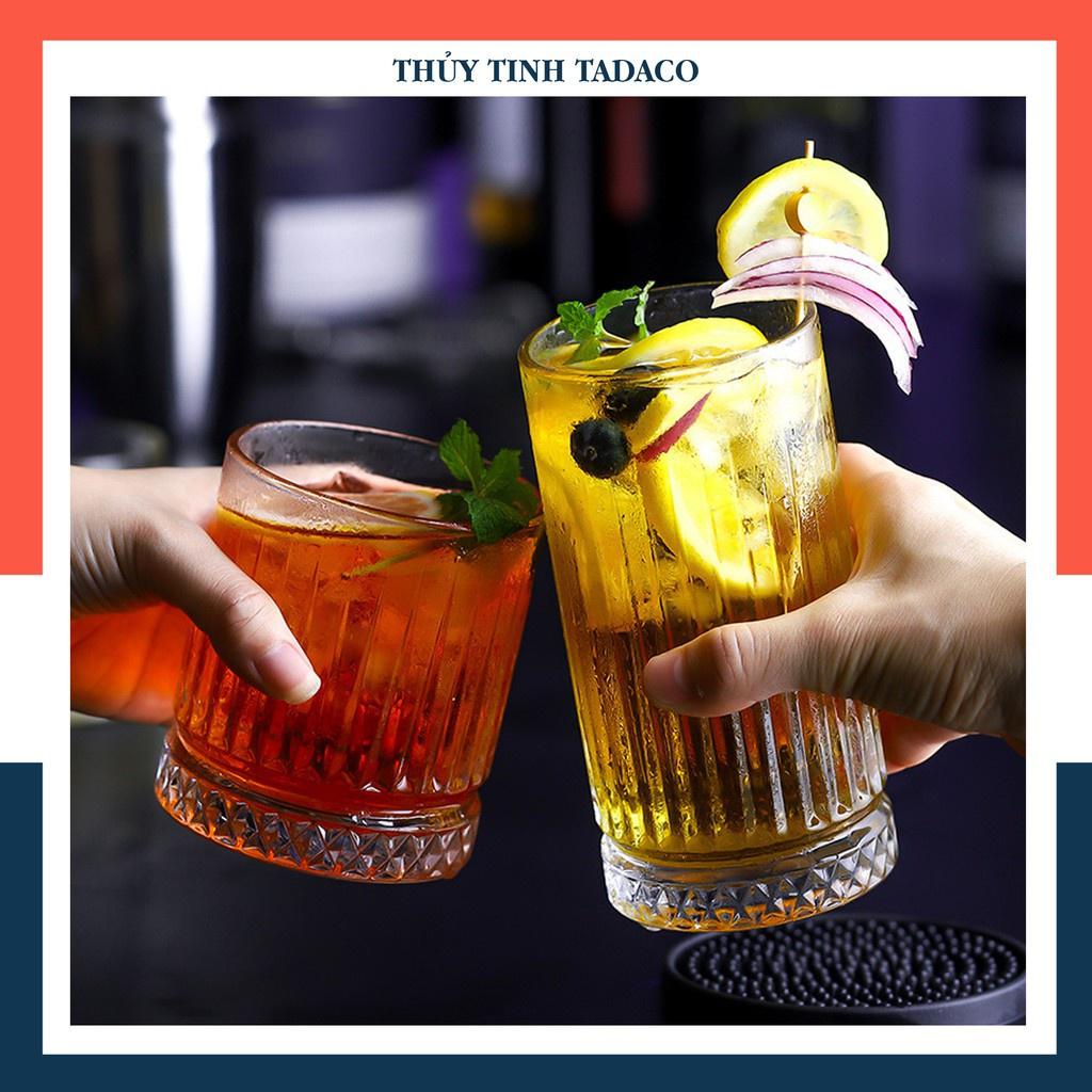 Ly Thủy Tinh Chịu Nhiệt Thân Ly Vân Sọc Miệng Ly Mạ Vàng Đế Kiểu Dáng Kim Cương 445ml Sang Trọng - Cốc Thủy Tinh Cao Cấp