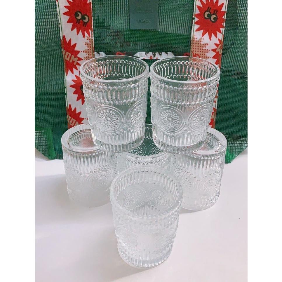 ✨Bộ 6 ly thủy tinh chịu nhiệt cao cấp dùng uống nước hoặc rượu tây vân trống đồng trắng không viền vàng 315ml