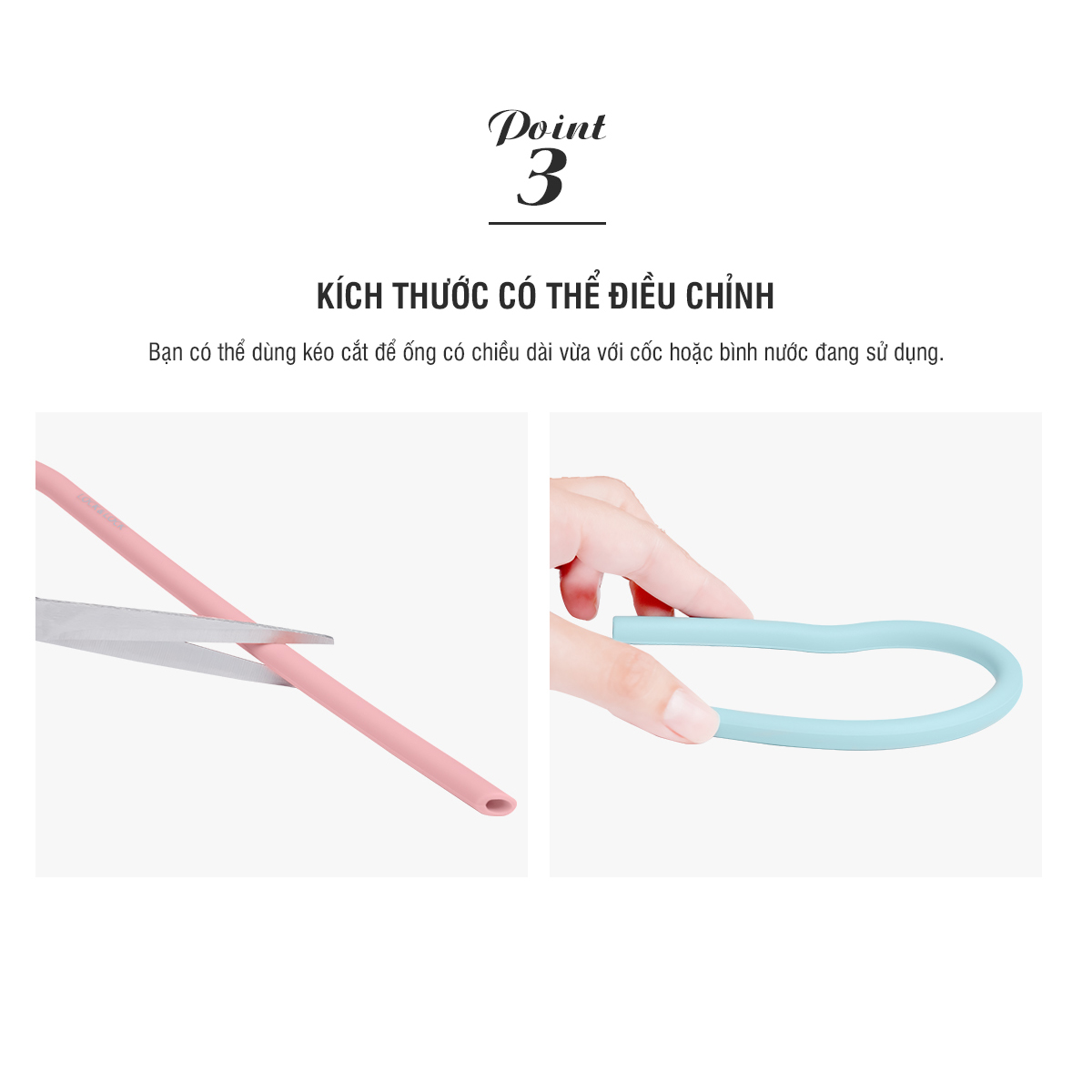 Bạn có thể dùng kéo cắt để ống có chiều dài vừa với cốc hoặc bình nước đang sử dụng.