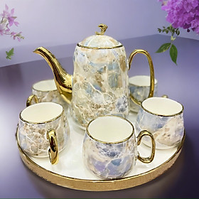 ✨Bộ ấm chén, bình trà cao cấp men vân đá viền mạ vàng 24k đế xoay 360d