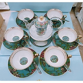 Bộ ấm chén kèm 6 đĩa lót tách pha trà hoa thủy tinh kết hợp gốm sứ xương cao cấp có đế đun và thìa hoa xanh và chimBộ ấm chén kèm 6 đĩa lót tách pha trà hoa thủy tinh kết hợp gốm sứ xương cao cấp có đế đun và thìa hoa xanh và chimBộ ấm chén kèm 6 đĩa lót tách pha trà hoa thủy tinh kết hợp gốm sứ xương cao cấp có đế đun và thìa hoa xanh và chim