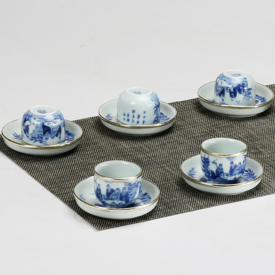 Bộ ấm trà men lam trắng bát tràng được vẽ họa tiết cổ với tích “trúc lâm thất hiền” là một trong những bộ ấm trà thông dụng của làng cổ Bát Tràng. Họa tiết
