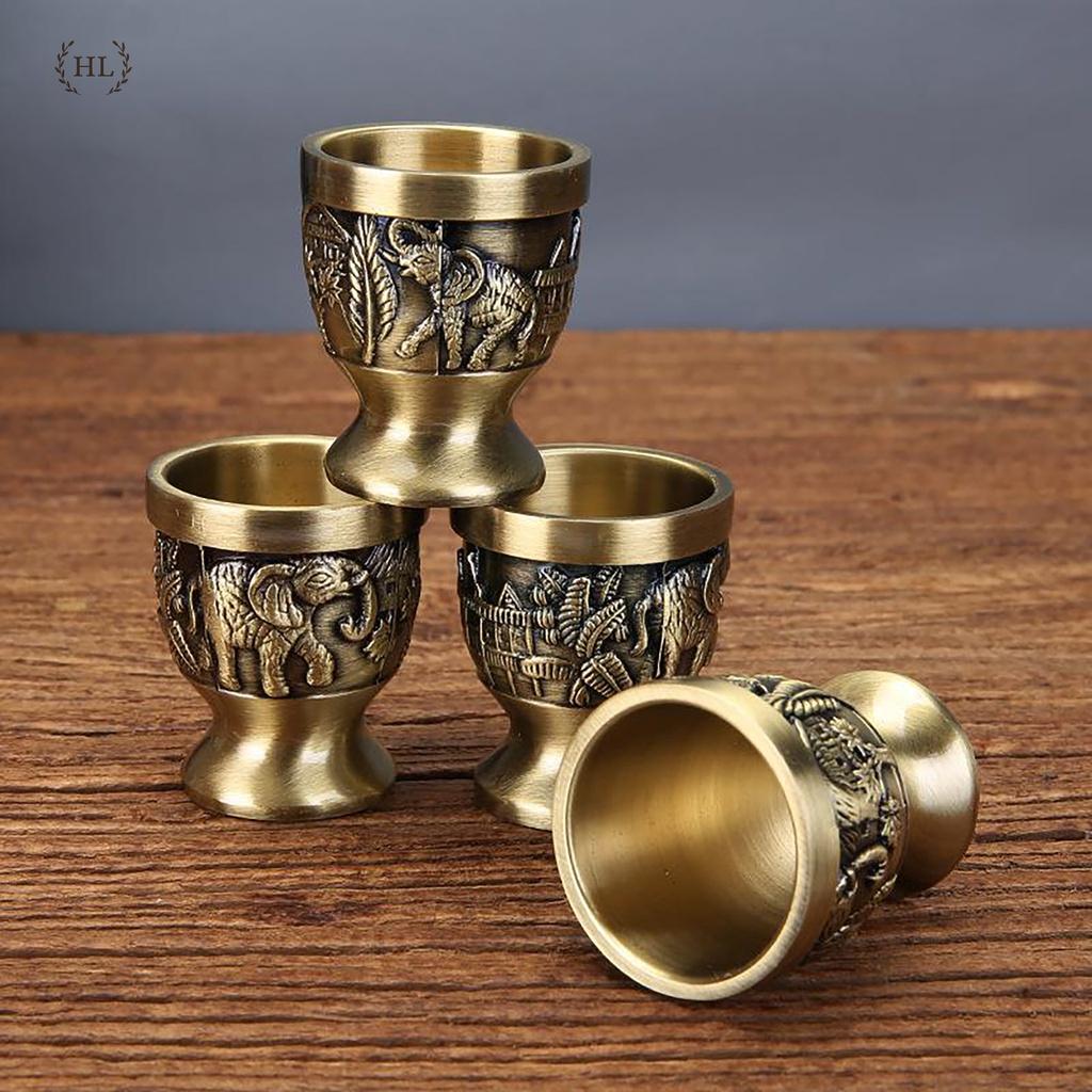 ✨Bộ ấm trà đồng 4 ly - 6 ly | Bộ ấm trà ban thờ phật - thần tài cao cấp hoa văn họa tiết voi Thái phú quý đại cát